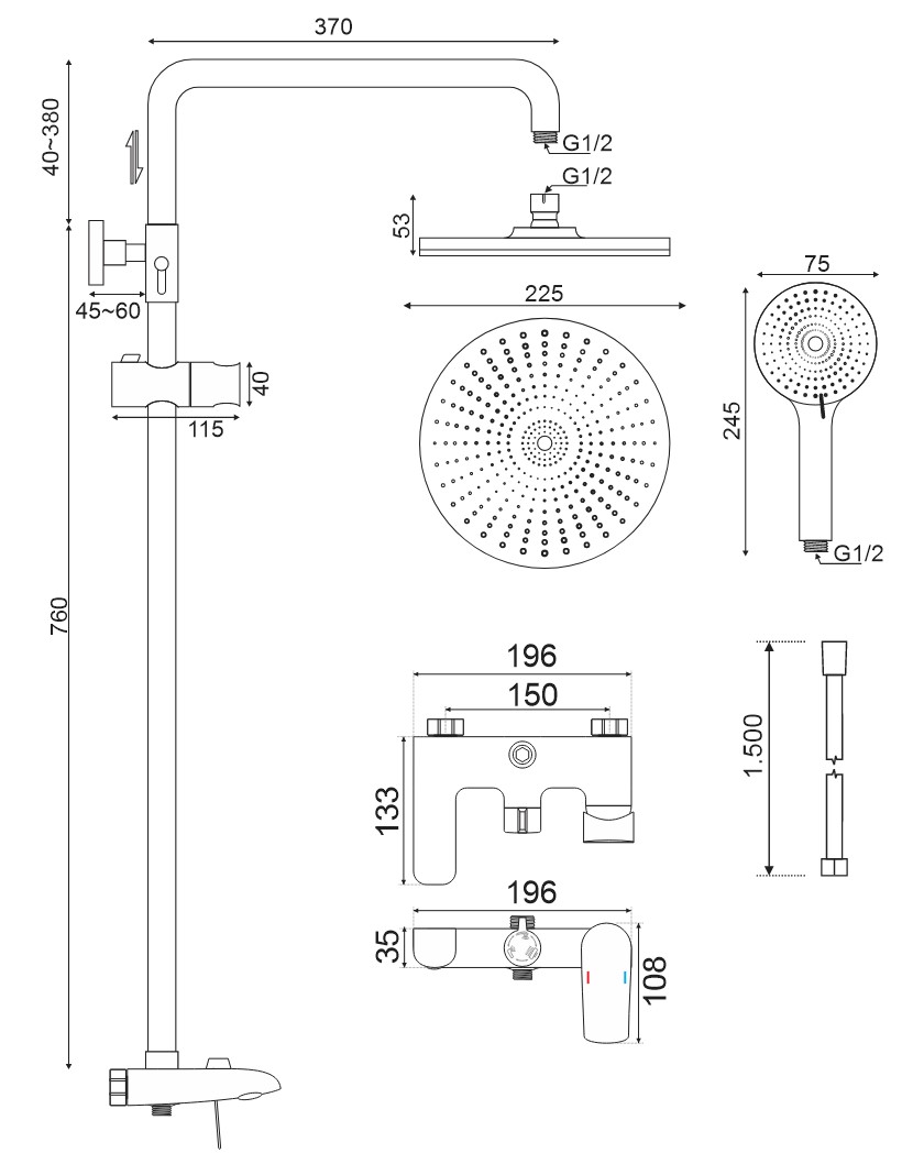 - Bát sen & tay sen được làm từ nhựa ABS với nhiều đầu phun tạo áp lực nước đều cho bạn cảm giác thoải nhất khi tắm gội.