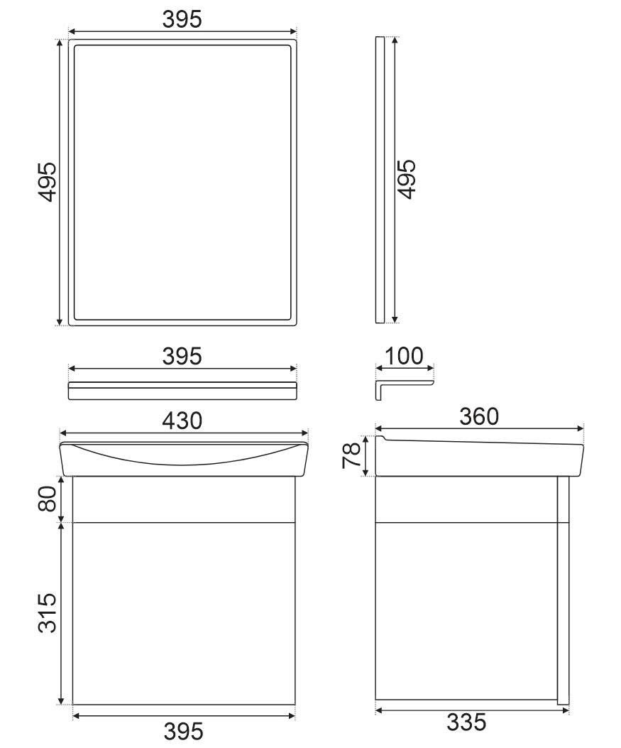 Bộ tủ chậu, kệ gương Lavabo mini ZT-LV959-Gr (Aluminum-858)