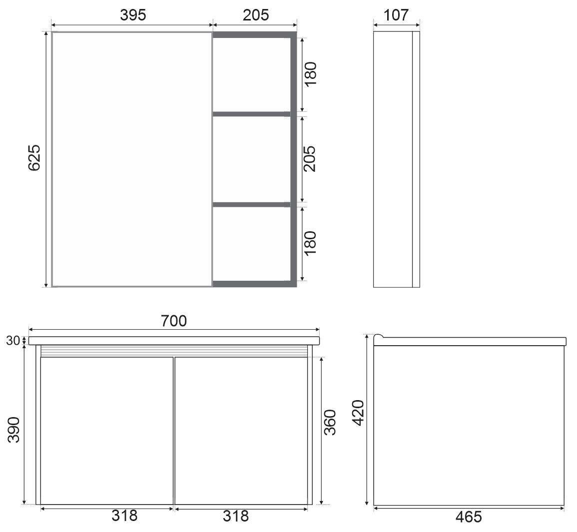 Bộ tủ chậu, kệ gương Lavabo mini ZT-LV959-Gr (Aluminum-858)